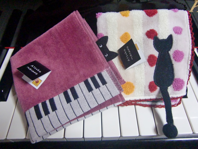 本当に、ピアノ&ネコ好きにはたまらんハンカチです(笑)